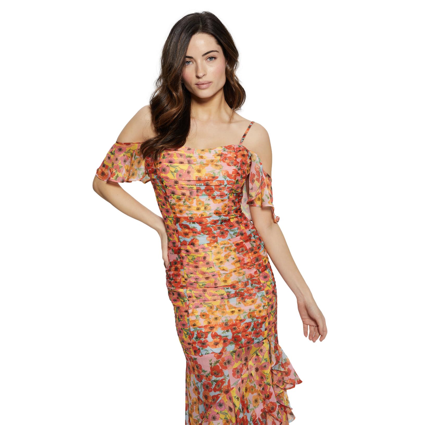 Γυναικείο φόρεμα μακρύ GUESS Juliana φλοράλ πορτοκαλί