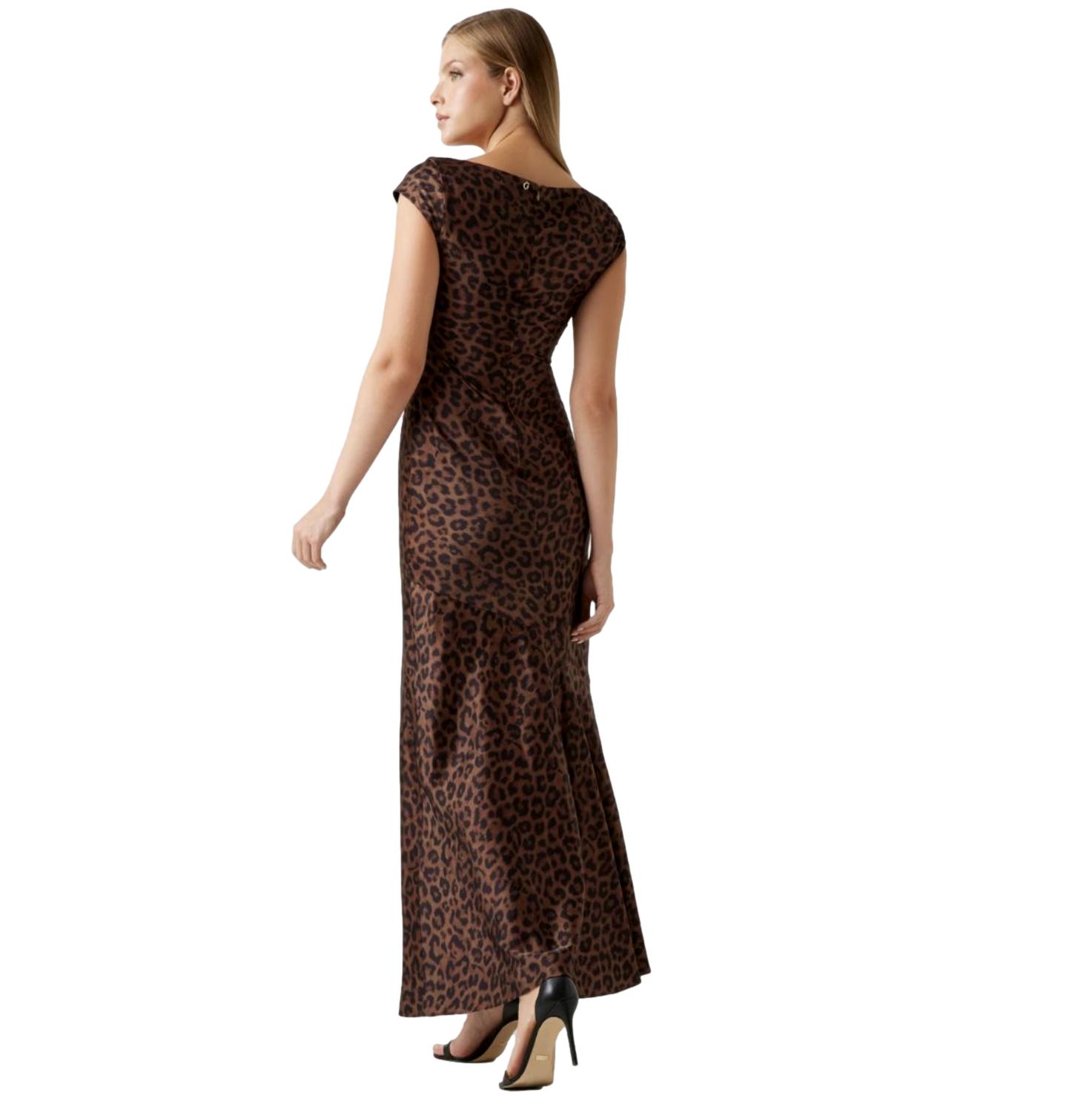 Γυναικείο φόρεμα μακρύ Guess Silvana σατέν λεοπάρ