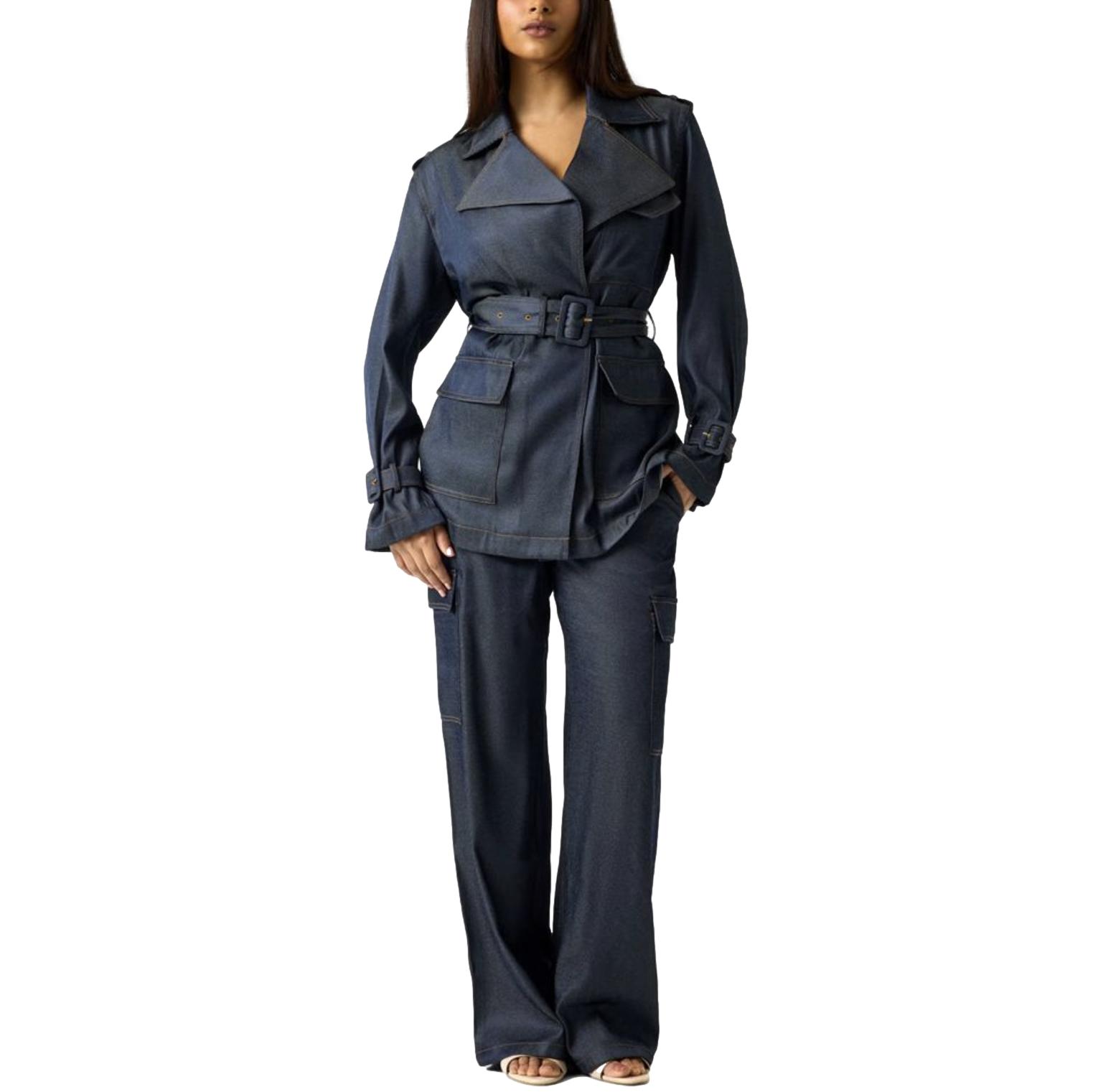 Γυναικεία καπαρντίνα Guess Regine short trench μπλέ