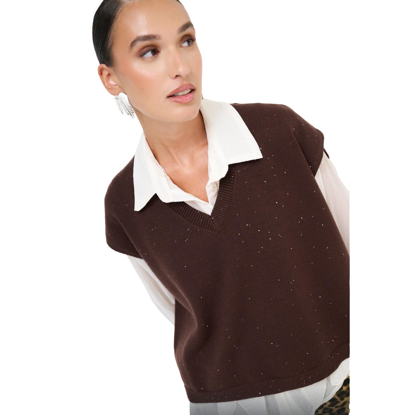 Πλεκτό αμάνικο με στρας Γυναικείο καφέ