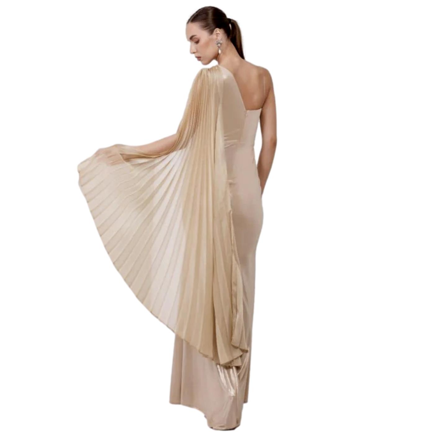 Φόρεμα maxi χρυσό με έναν ώμο και σκίσιμο