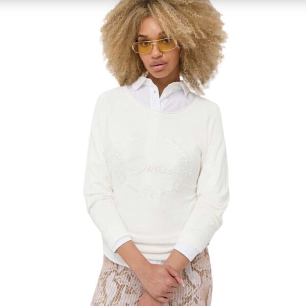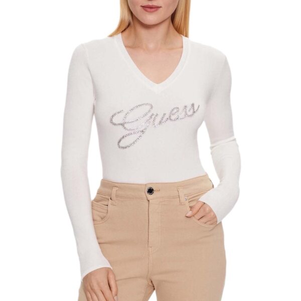 Μπλούζα πλεκτή Guess Ls Laure Vn Logo cream white γυναικείο