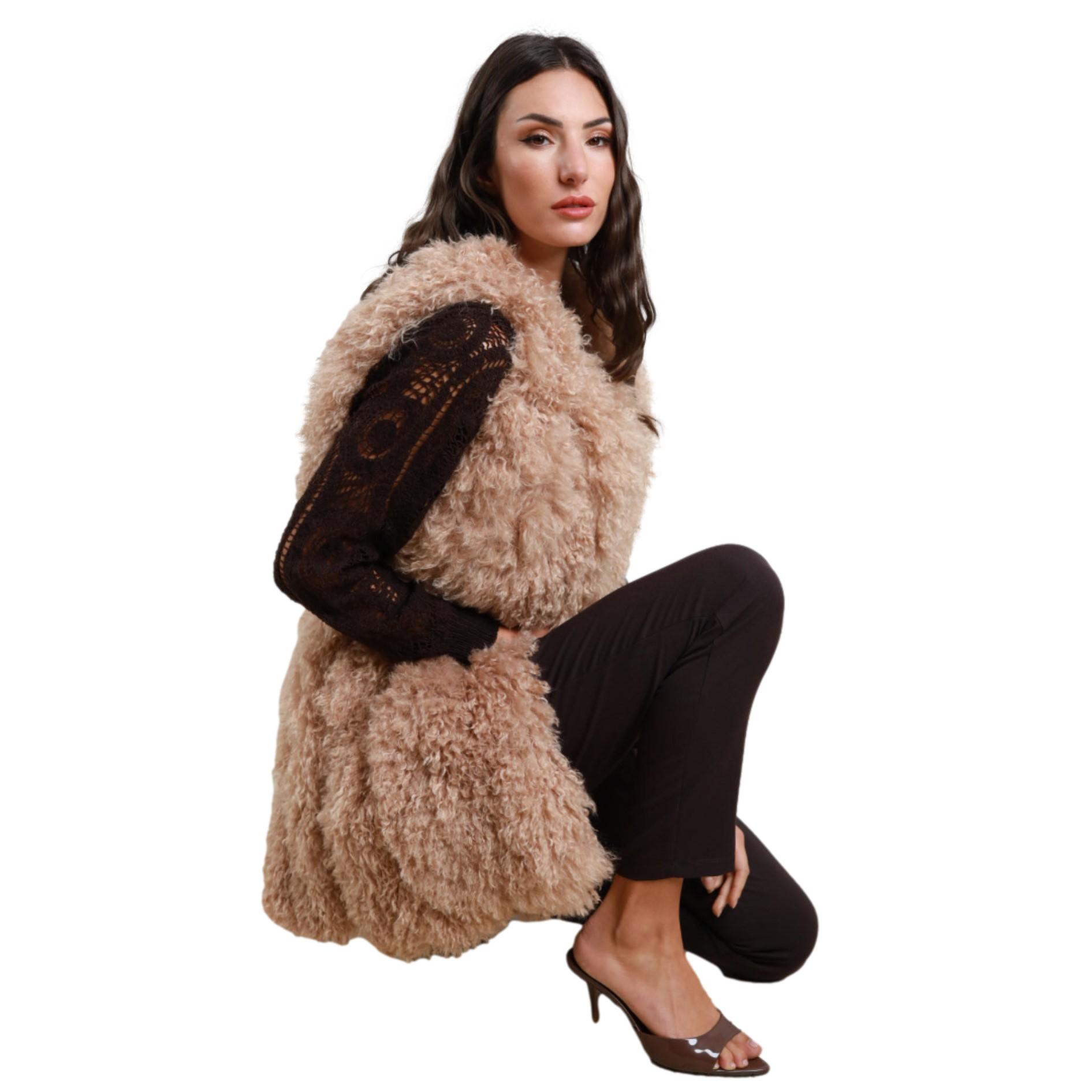 Γιλέκο γουνάκι Susy Mix taupe Γυναικείο