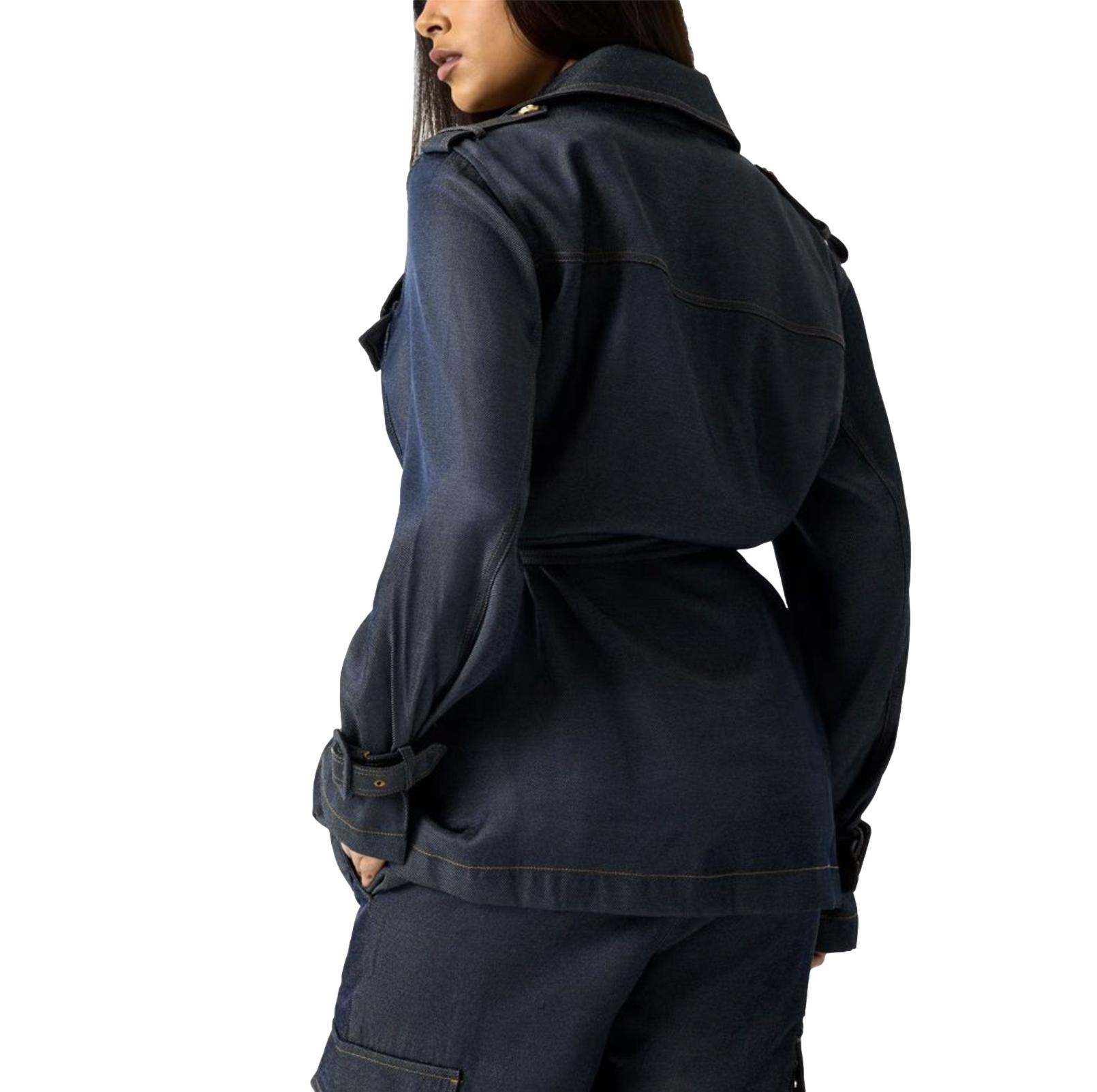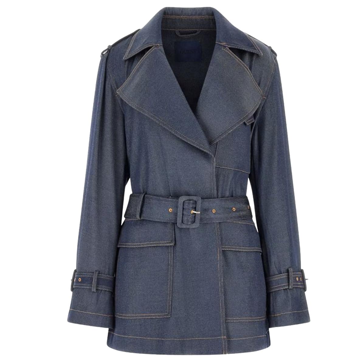 Γυναικεία denim καπαρντίνα της Guess με regular εφαρμογή. Είναι κατασκευασμένη από πολυεστέρα και βισκόζη, ενώ επιπλέον διαθέτει κλασικό γιακά με πέτο, κλείσιμο με κουμπιά, επωμίδες με κουμπιά, μακριά μανίκια, αποσπώμενη ζώνη καθώς και δύο πλαϊνές τσέπες με κλαπέτα.