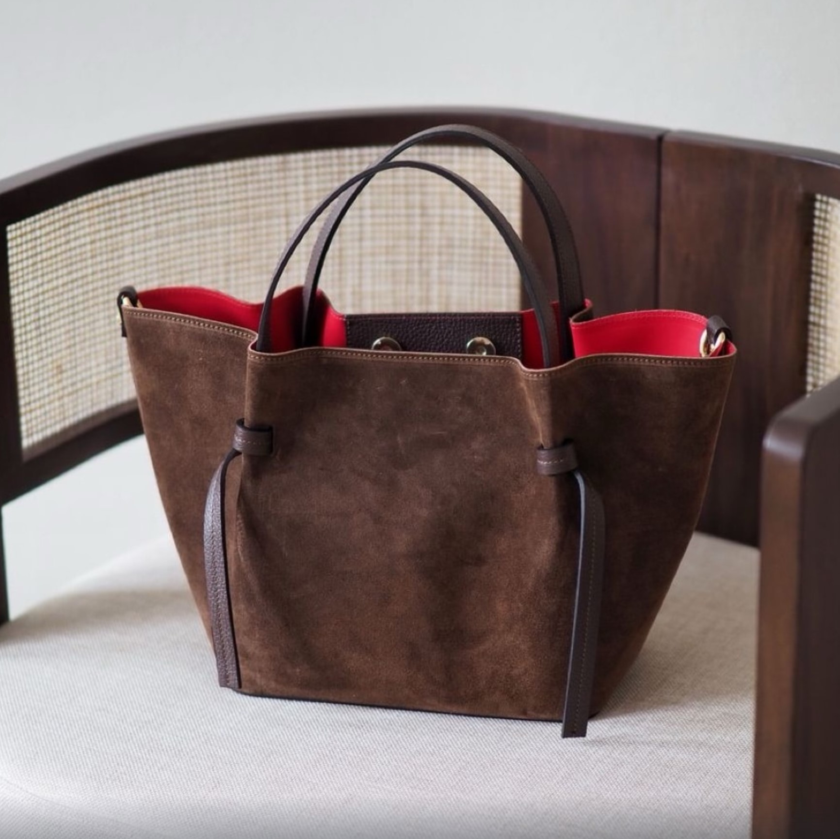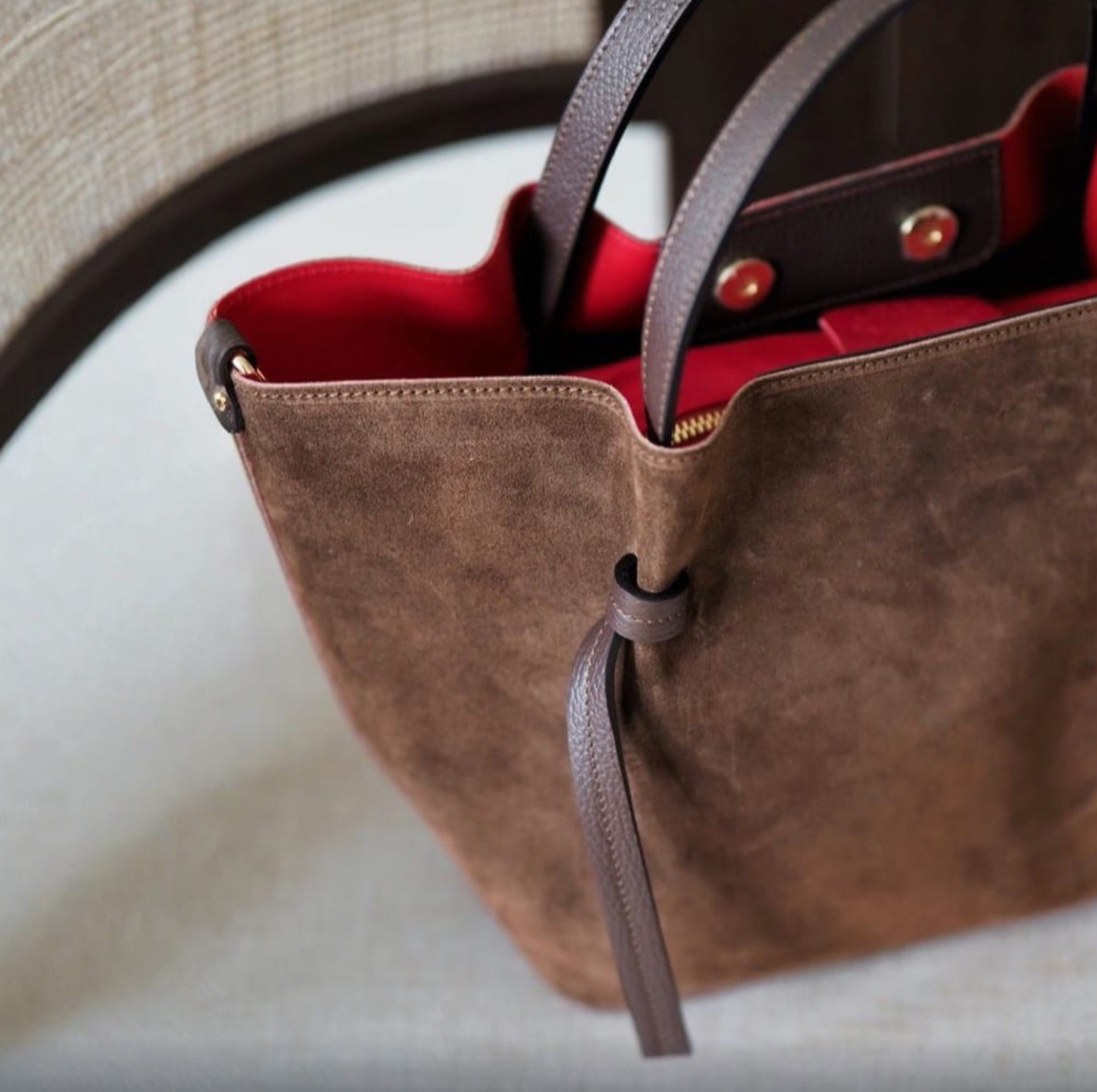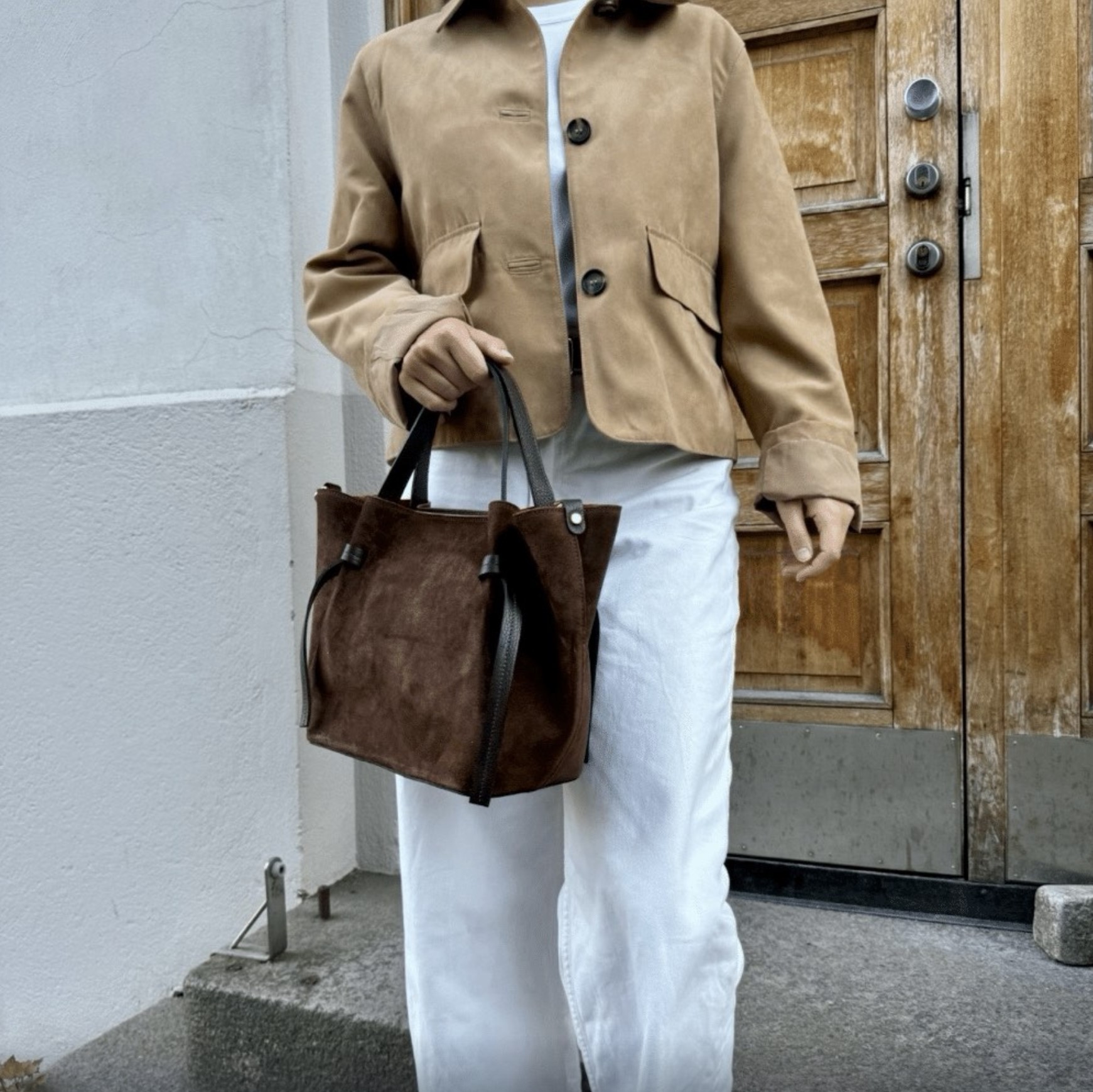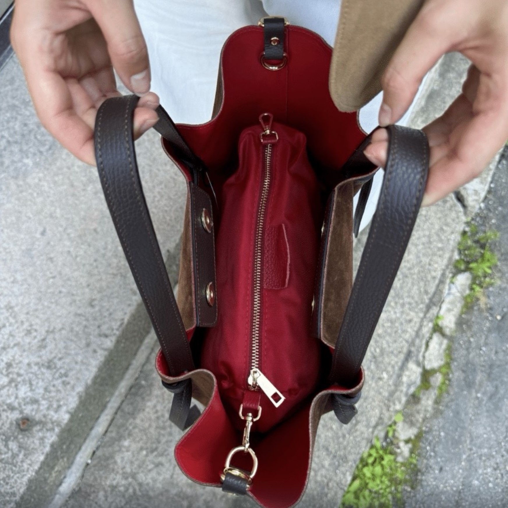 Γυναικεία Τσάντα χειρός δέρμα suede καφέ