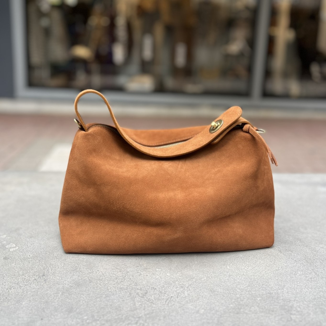 Γυναικεία Τσάντα χειρός δέρμα suede ταμπά
