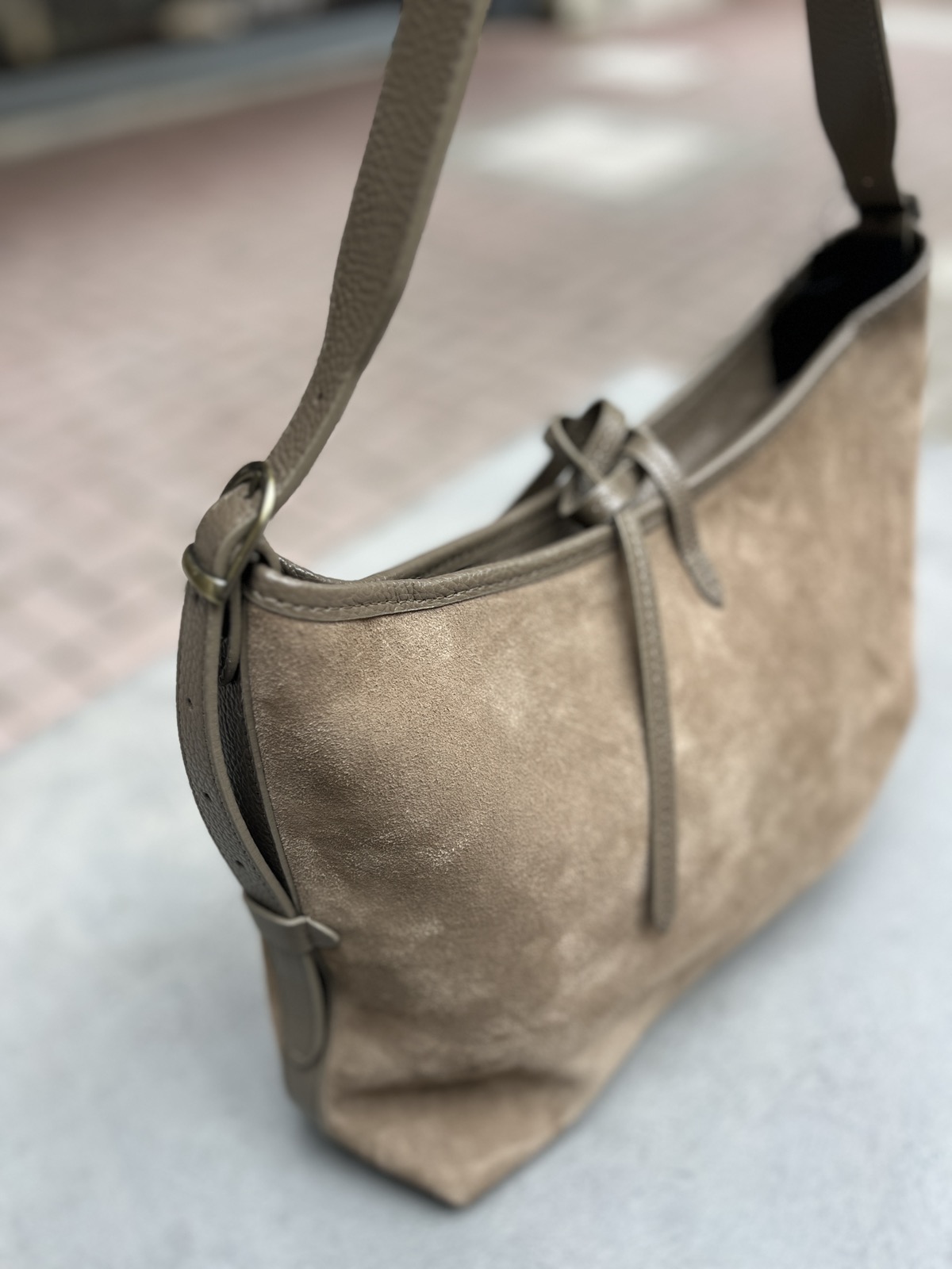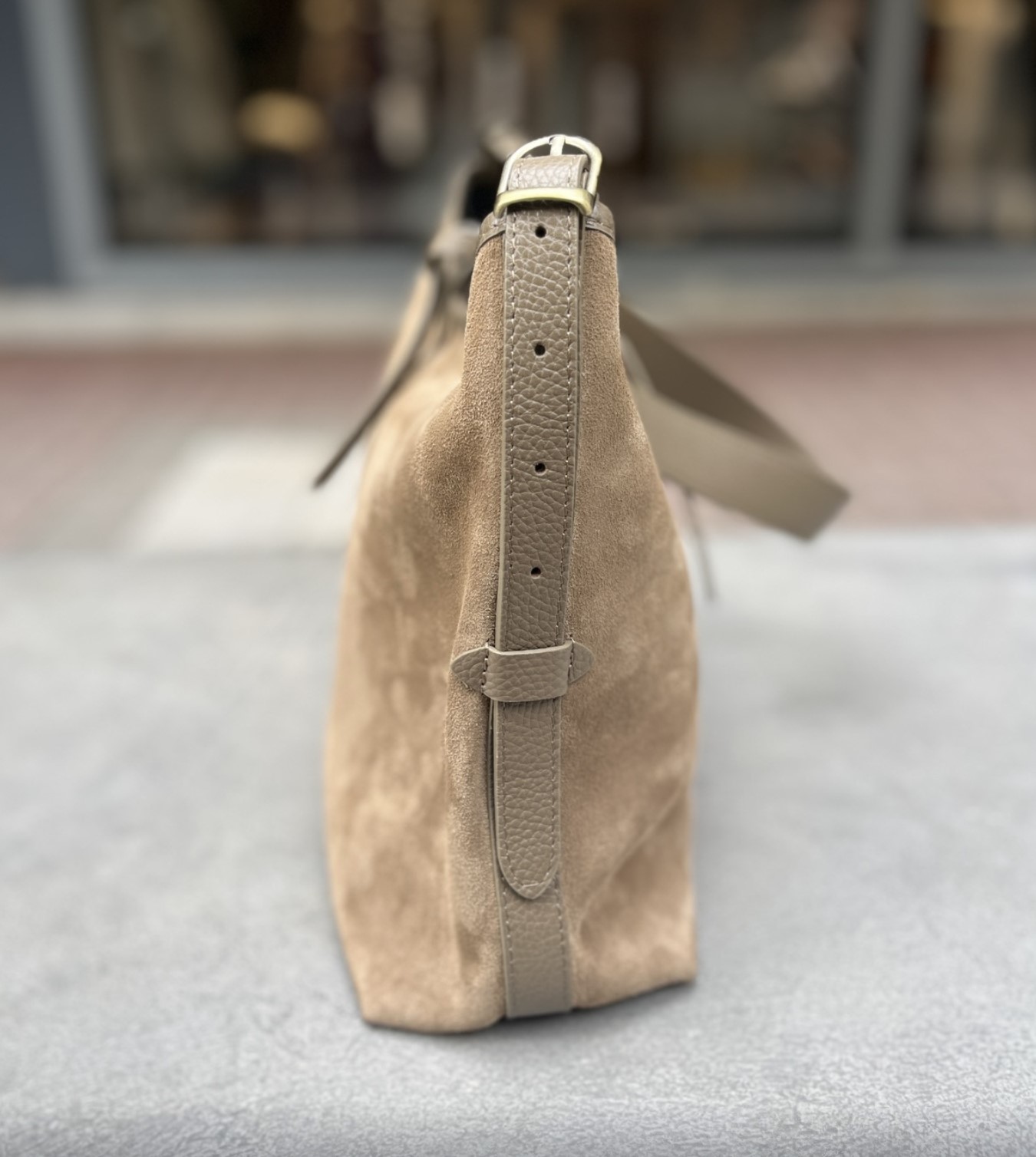 Γυναικεία Τσάντα χειρός δέρμα suede taupe