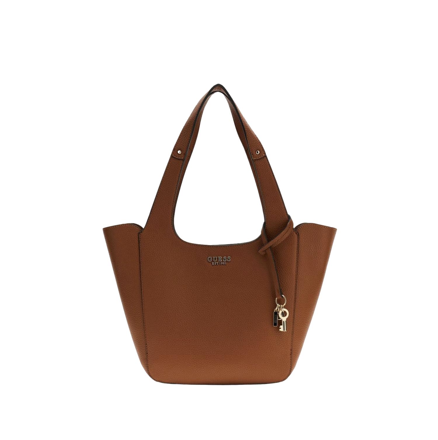 - Εντυπωσιακές Λεπτομέρειες: Το χρυσό λογότυπο “GUESS EST 1981” στο μπροστινό μέρος προσδίδει μια πινελιά πολυτέλειας, ενώ οι χρυσές μεταλλικές λεπτομέρειες και τα καρφιά ενισχύουν την κομψή της εμφάνιση.