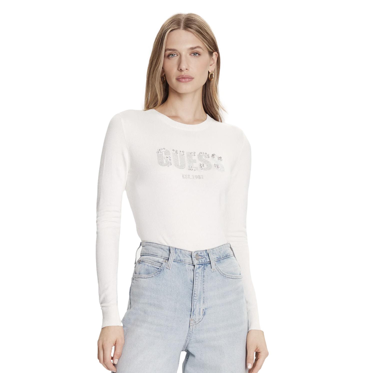 Μπλούζα πλεκτή Guess Reyna λευκό
