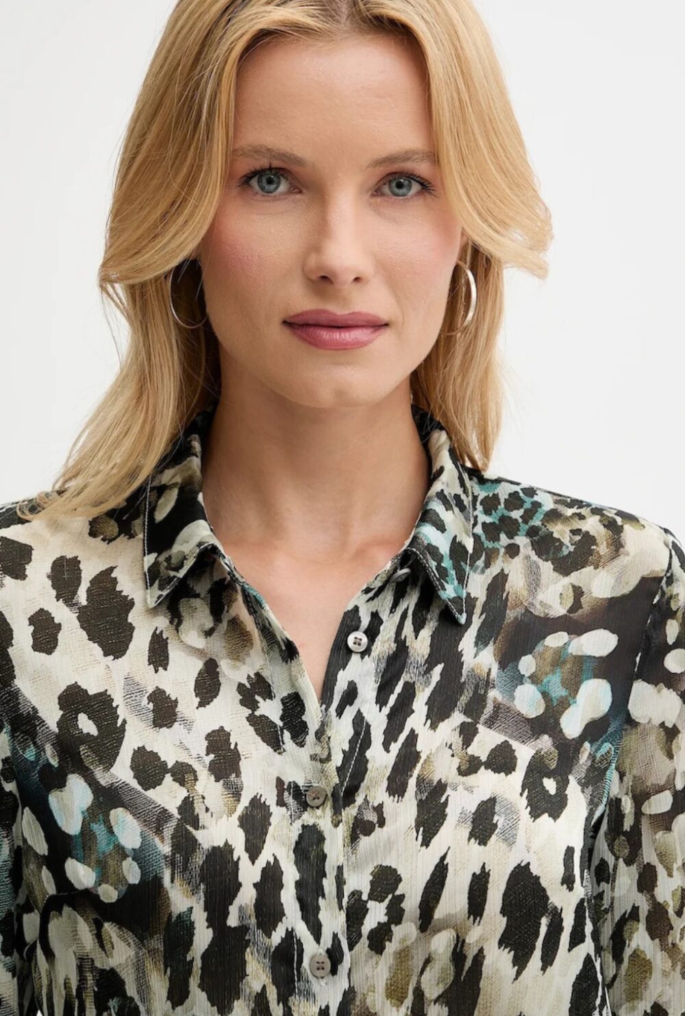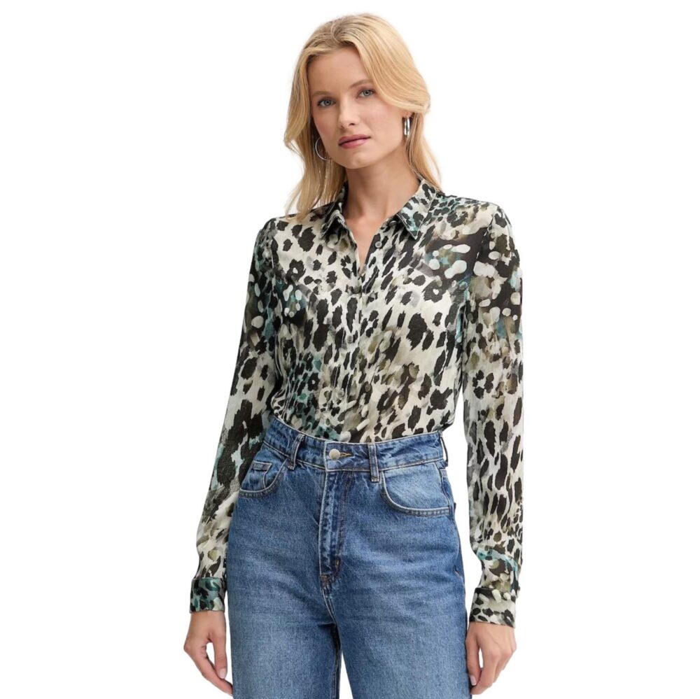 Πουκάμισο από σιφόν ύφασμα με κλασικό γιακά και μακριά μανίκια με μανσέτες.