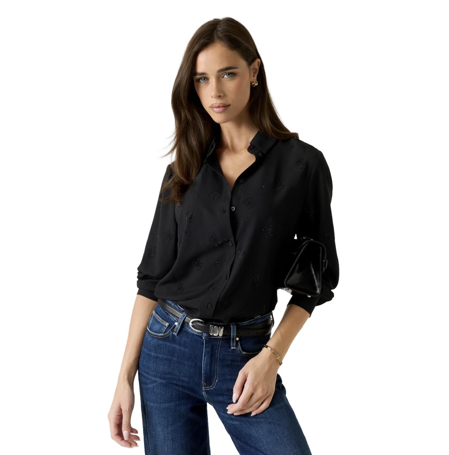 Πουκάμισο Guess logo 4G μαύρο
