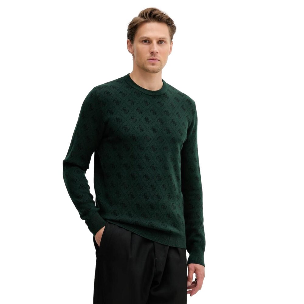 Πουλόβερ GUESS humber logo πράσινο σκούρο ανδρικό