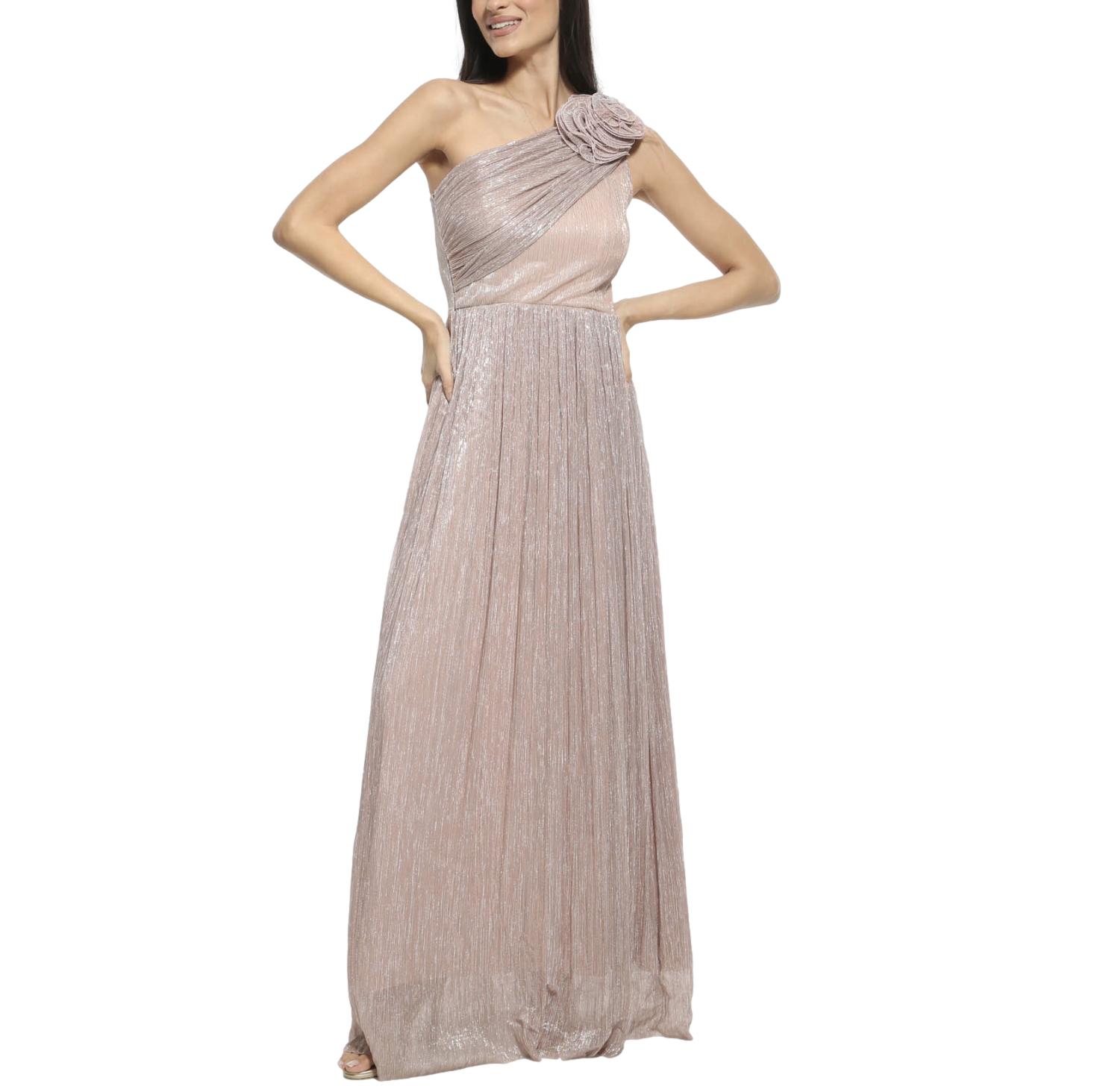 Φόρεμα maxi lurex dusty pink με έναν ώμο