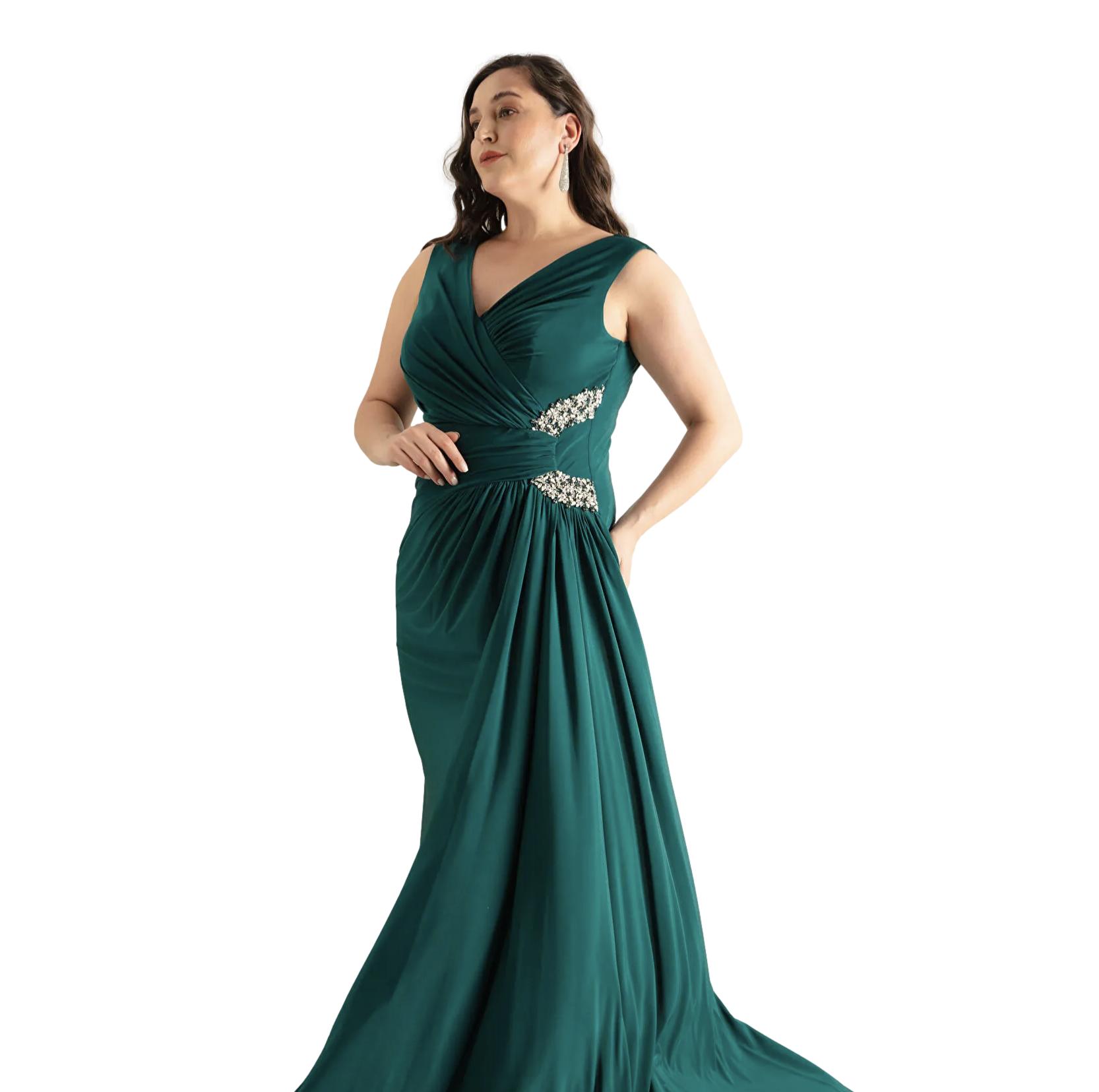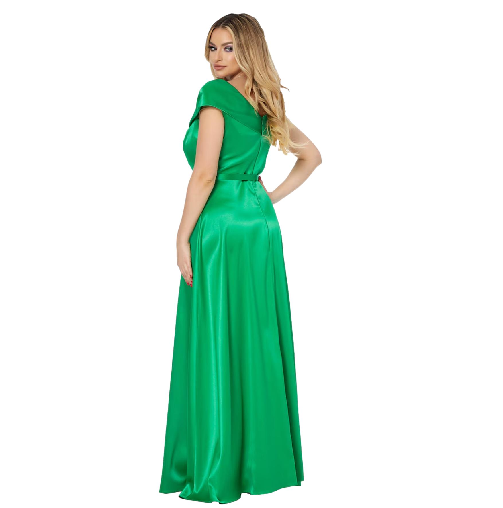 Φόρεμα maxi στόλισμα με πέτρες στο πλάι και σκίσιμο σμαραγδί