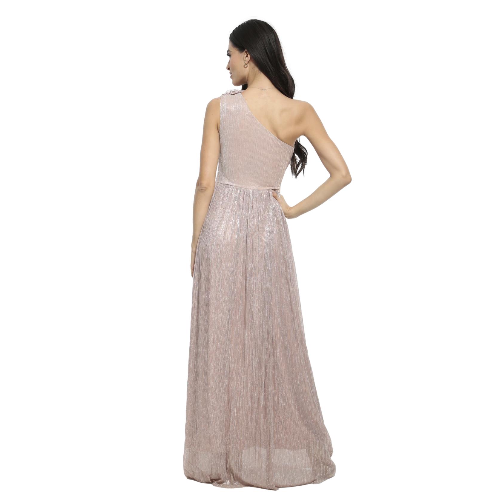 Φόρεμα maxi lurex dusty pink με έναν ώμο