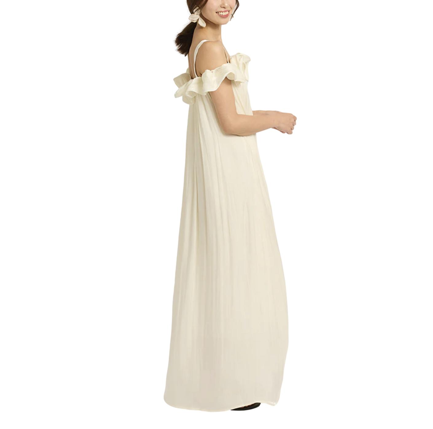 Φόρεμα maxi με βολάν off-shoulder κρέμ